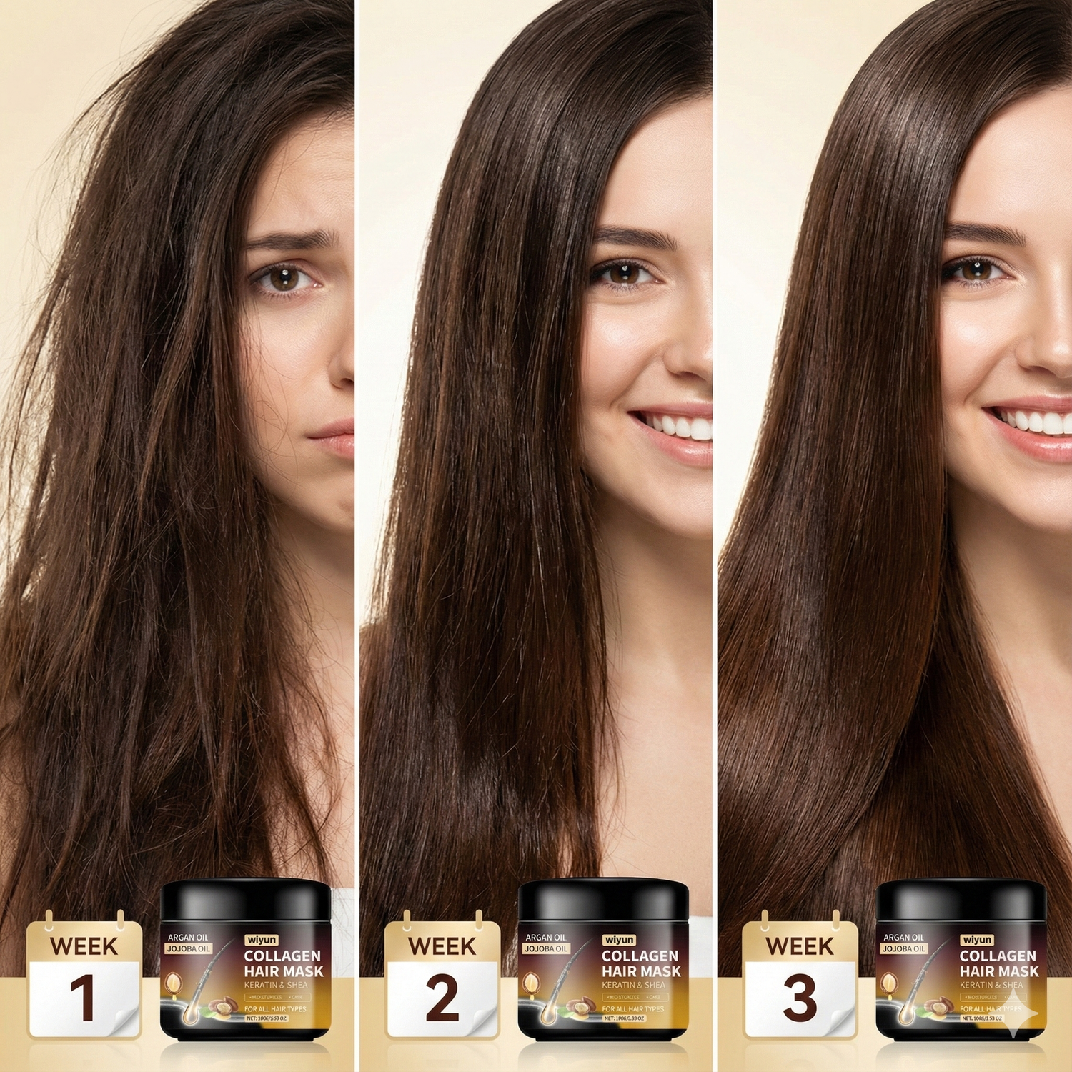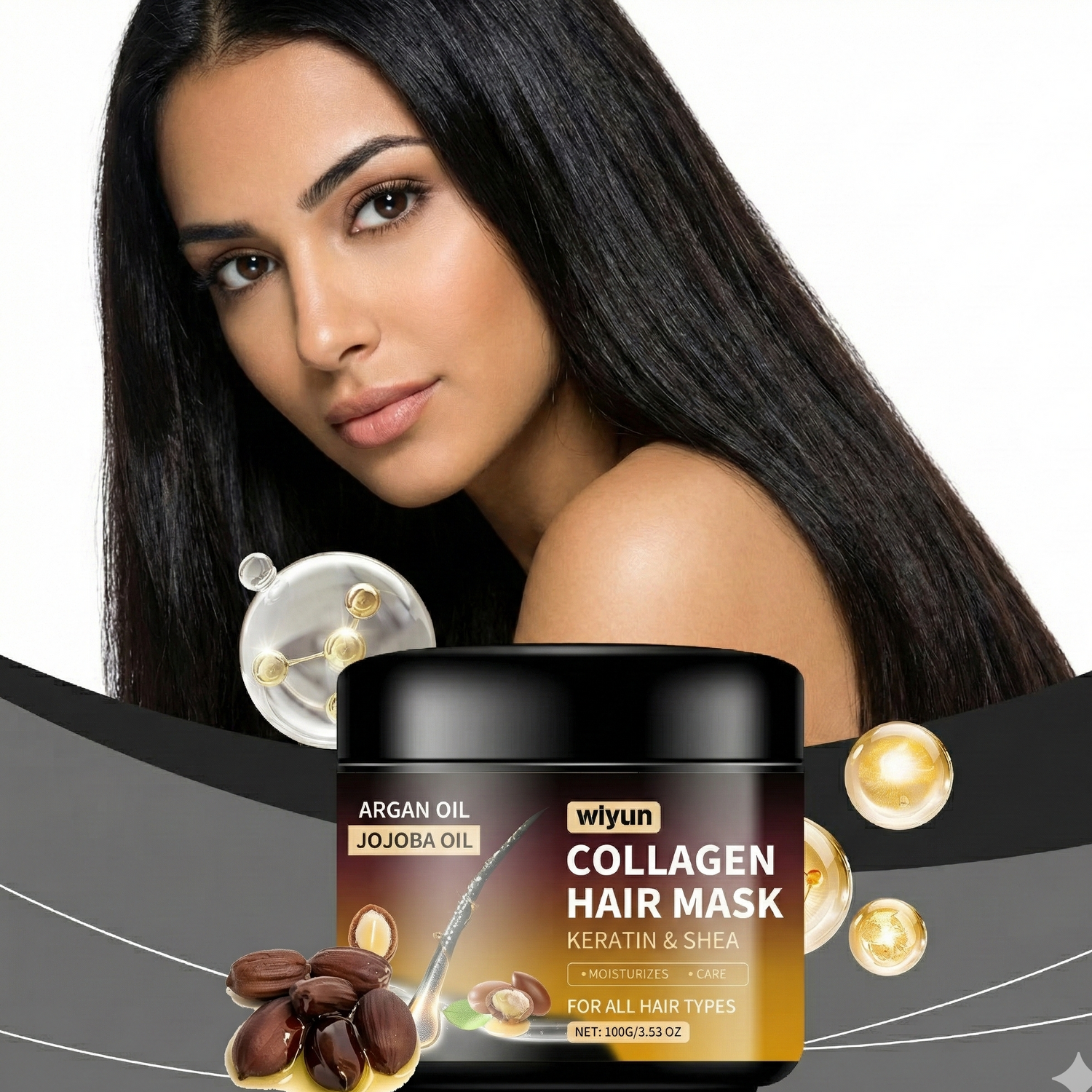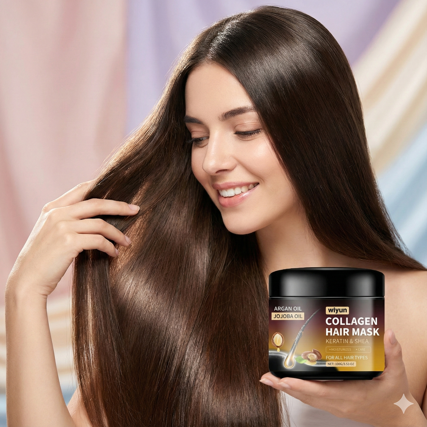 - ترميم الشعر الجاف والمتقصف:قناع الكولاجين يرطب الشعر بعمق ويعيد له صحته ومرونته.
