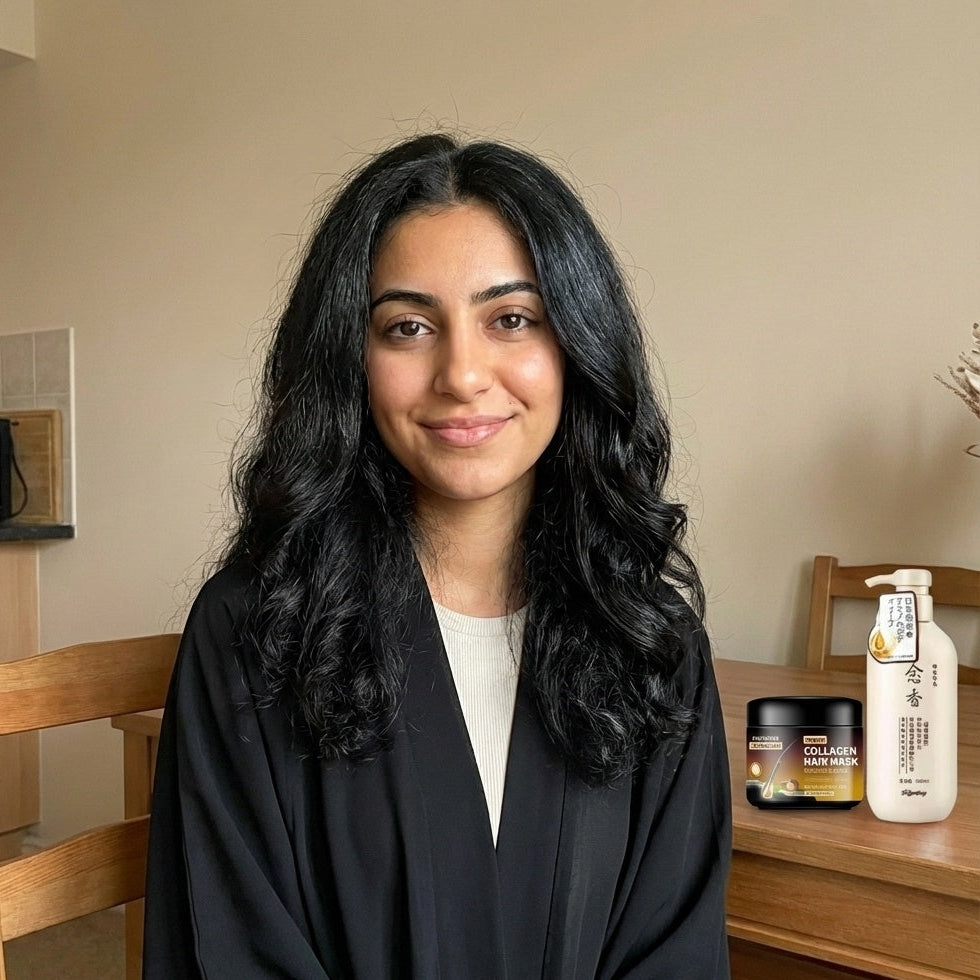 "كنت أعاني من الشعر الجاف والمتقصف، لكن بعد استخدام قناع الشعر بالكولاجين مع شامبو ساكورا الياباني لاحظت فرقًا كبيرًا في نعومته وكثافته، وأصبح شعري أكثر صحة ولمعانًا من أول استخدام. الآن لا أستطيع الاستغناء عنهم!"